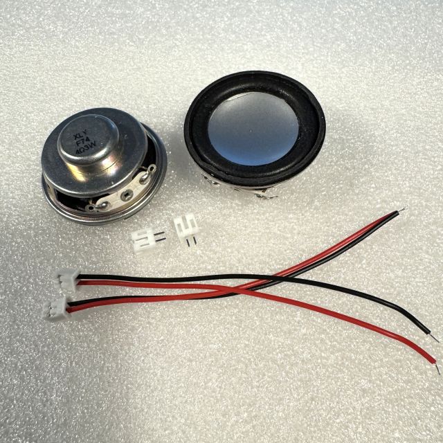 Iets betere speakers 40mm met iets meer bas. Monteren met een drupje lijm. Per 2 stuks. Kabeltje met van PH2.0 plugjes. Inclusief de connectoren voor op de print.