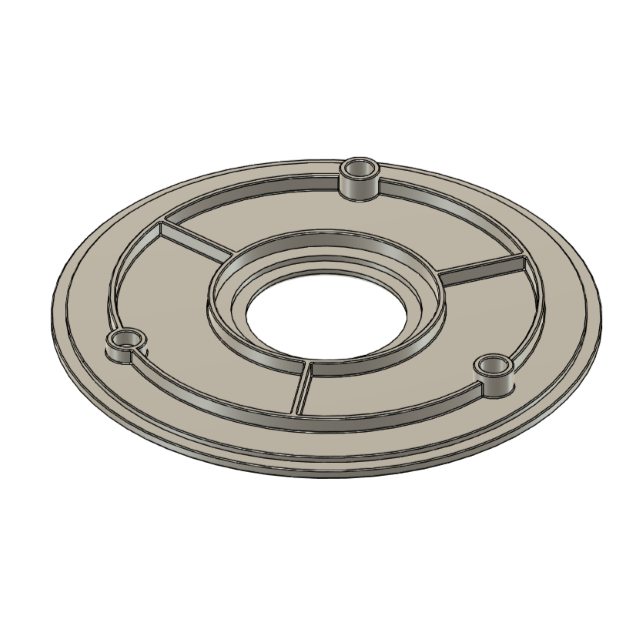 Bodemplaat om de voet mee af te dichten. In het midden is een gat voor een passieve woofer. Vast te zetten met 3x schroefje M2 (geen boutjes).