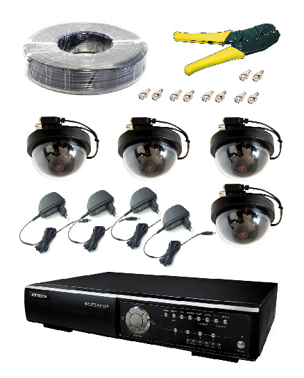 Deze complete cameraset bestaat uit de Konig Compact digitale recorder, 4 uitstekende CCD Dome bewakingscamera's voorzien van 1/3" beeldsensor met 3.6mm lens, 4 stuks net-adapter en 4 BNC kabels van elk 10 meter. Tevens ontvangt u twee bewakingsstickers.
