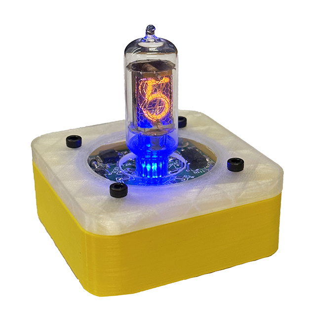 Prachtige nixie klok, eigen ontwerp, geheel met de hand gebouwd. Zeer beperkt leverbaar, slechts enkele stuks beschikbaar. Zie ook elders op de website, alwaar de bouwbeschrijvingen voor deze klok besproken worden. Een adapter van 12V is inbegrepen.