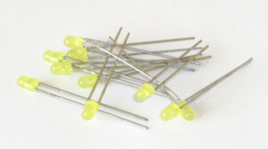 Zakje van 10 normale gele leds, 3mm diffuus.