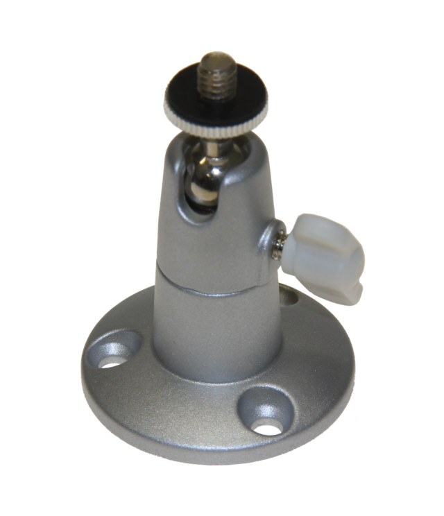 Kleine zilverkleurige montage steun voor de professionele camera's. Montage aan muur of plafond enz.