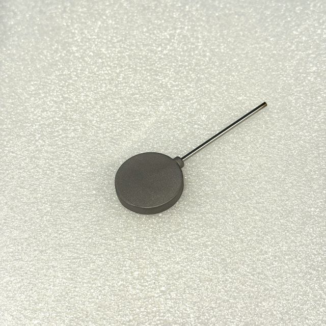 Om de zoeker arm mooi gebalanceerd te krijgen, gebruiken we dit contra gewicht. Dit contra gewicht is professioneel 3D geprint in staal! En daarom ook tamelijk prijzig. Met een asje van 2mm is deze in de 'clamp' geschoven, aan het draaipunt links. Samen met het viltje op de clamp zorgt dit voor een soepele bediening.